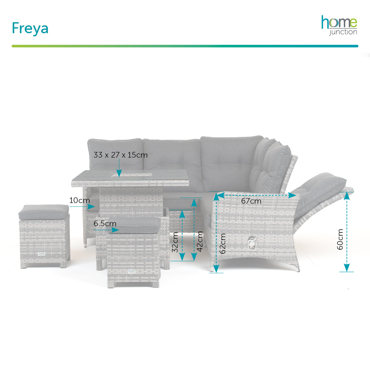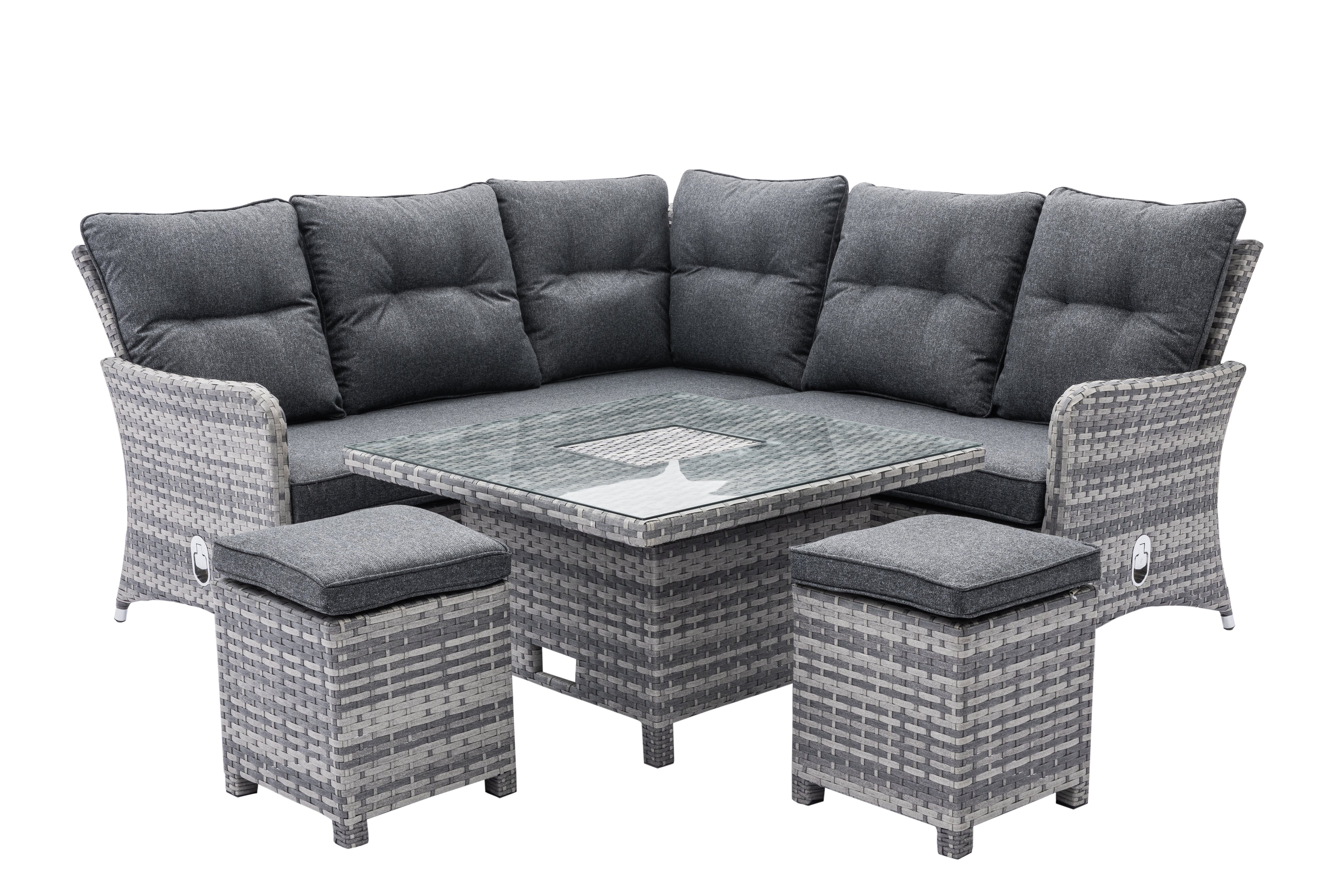 Home Junction Freya Grey Square Reclining Corner Sofa, Rising Table with Ice Bucket and 2 Stools