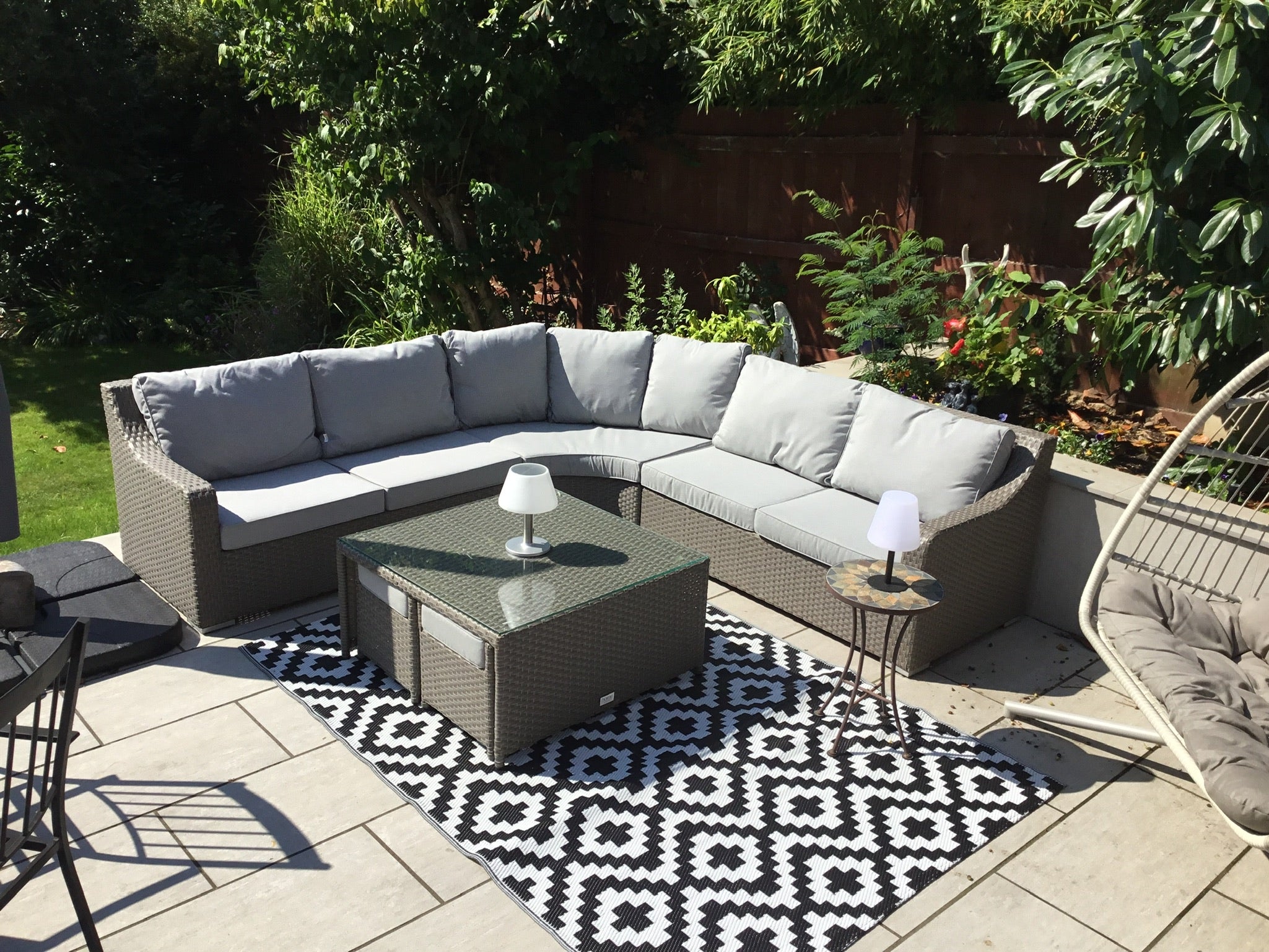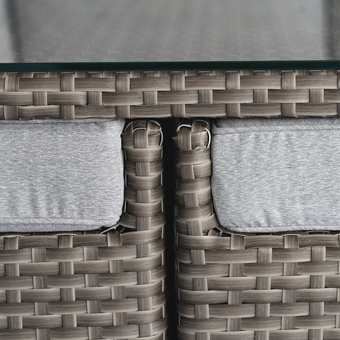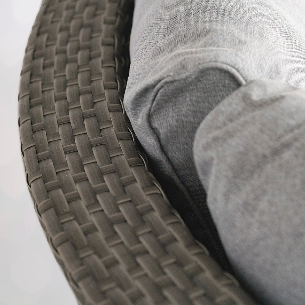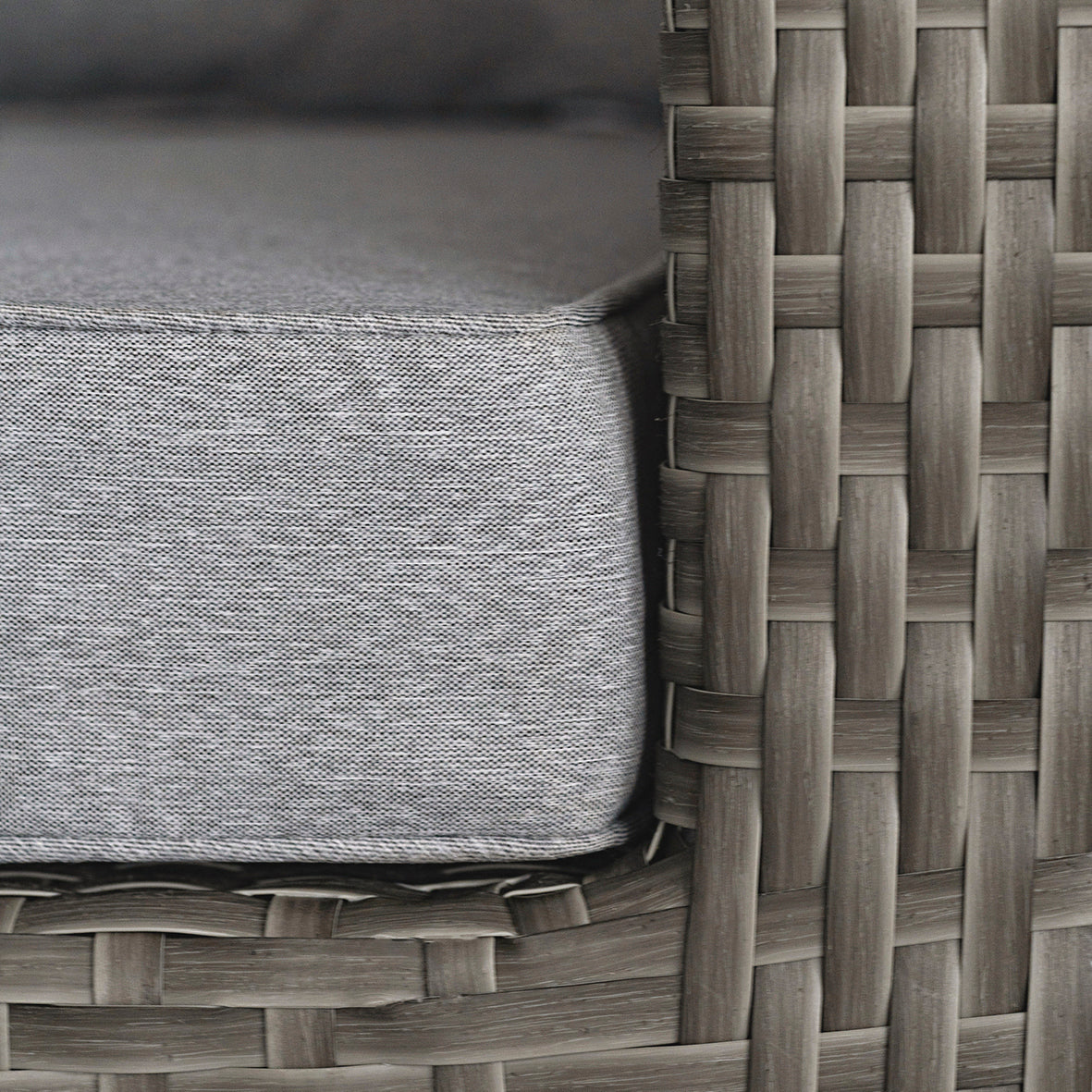 This gorgeous modern style corner luxury sofa set is made in our Home Junction premium medium grey rattan and fits 9 people comfortably. The light grey cushions are premium quality and super comfortable to enjoy relaxing with family and friends.