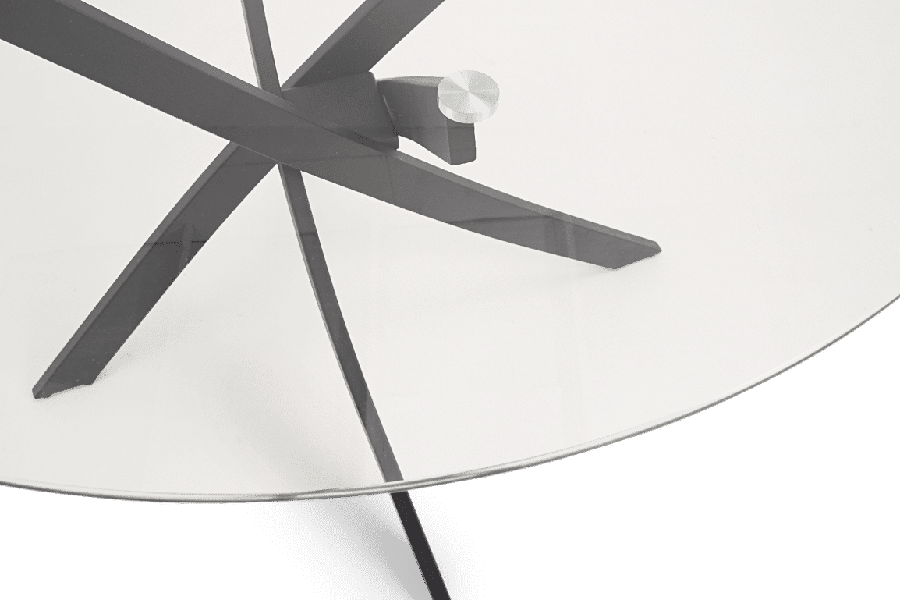 The Marina 100cm Round Glass Dining Table is an elegant and practical table, that fuses sleek and modern with industrial chic. Seating up to 4 diners comfortably, the Marina round table is a great space saver. With the crossed and curved design legs and smooth, clear tempered glass top, this table would be a great addition to any dining room.
